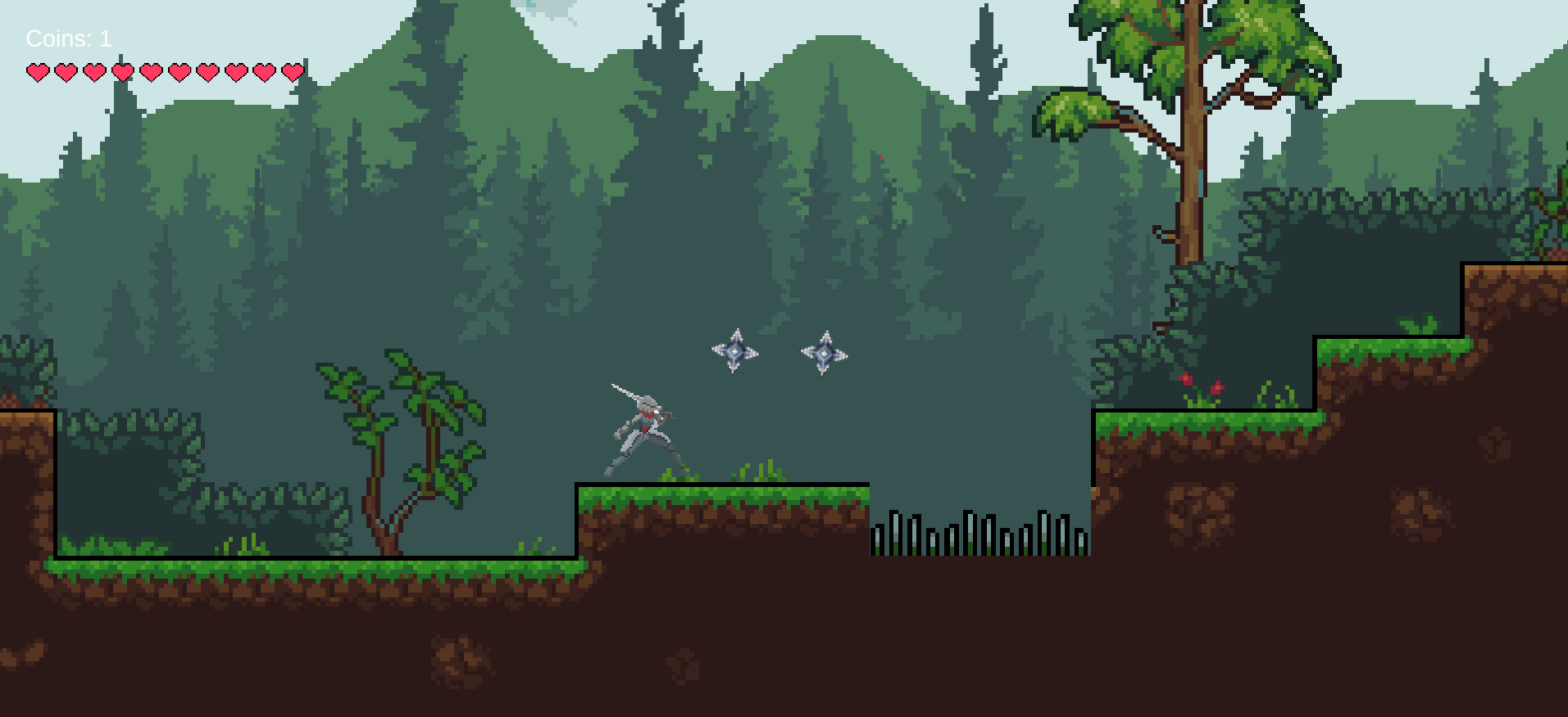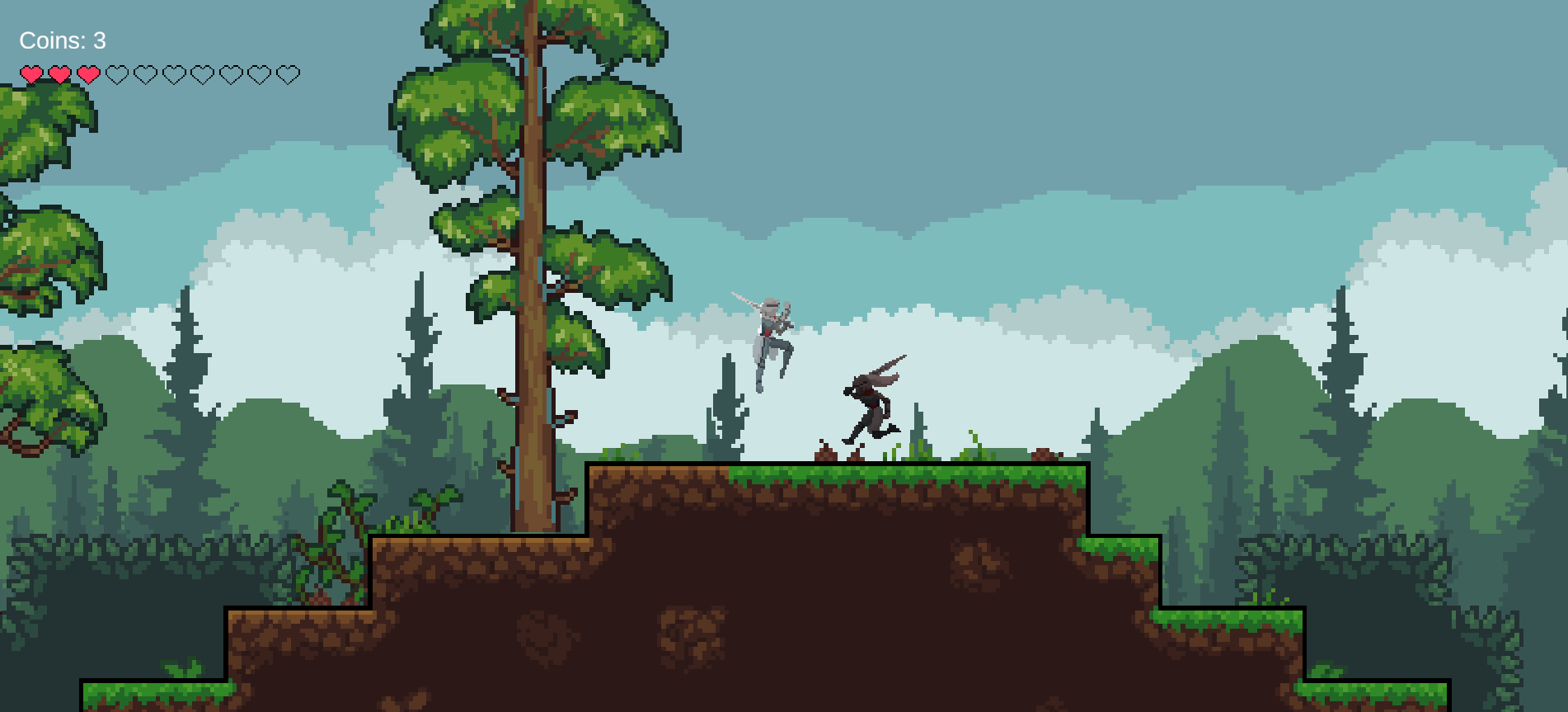 This prototype showcases the core combat, movement, and atmosphere of the world: fast, fluid, and unforgiving. Collect coins, manage your health, and master timing as you carve your path through the gloom.